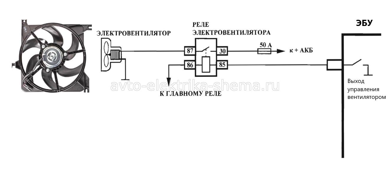 В длинных пробках часто включается вентилятор охлаждения двигателем, в салоне постоянно раздаётся щелчок реле и слышится вой вентилятора под капотом. На моей Гранте с завода стоит один вентилятор охлаждения и одна скорость управления им (смотрите схему ниже).